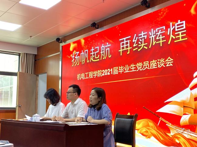 随着2021届学生毕业,党员学生也即将离开母校,走向社会。6月8日中午12:30,伟德国际1946bv官网党总支召开2021届毕业生党员离校座谈会。参加这次活动的有机电党总支书记朱峻同志、机电党总支副书记叶云霞同志,学工办主任李芸同志。