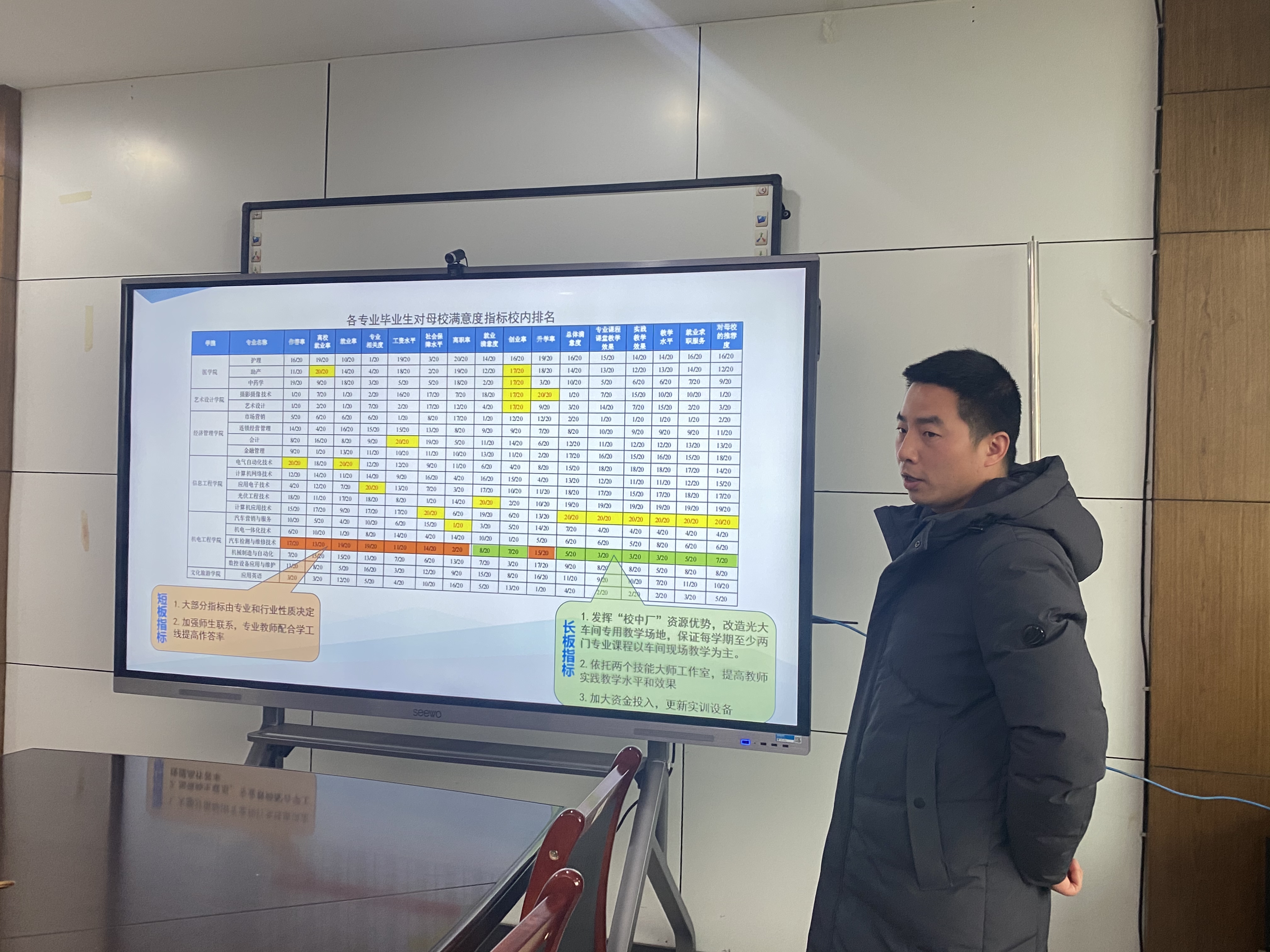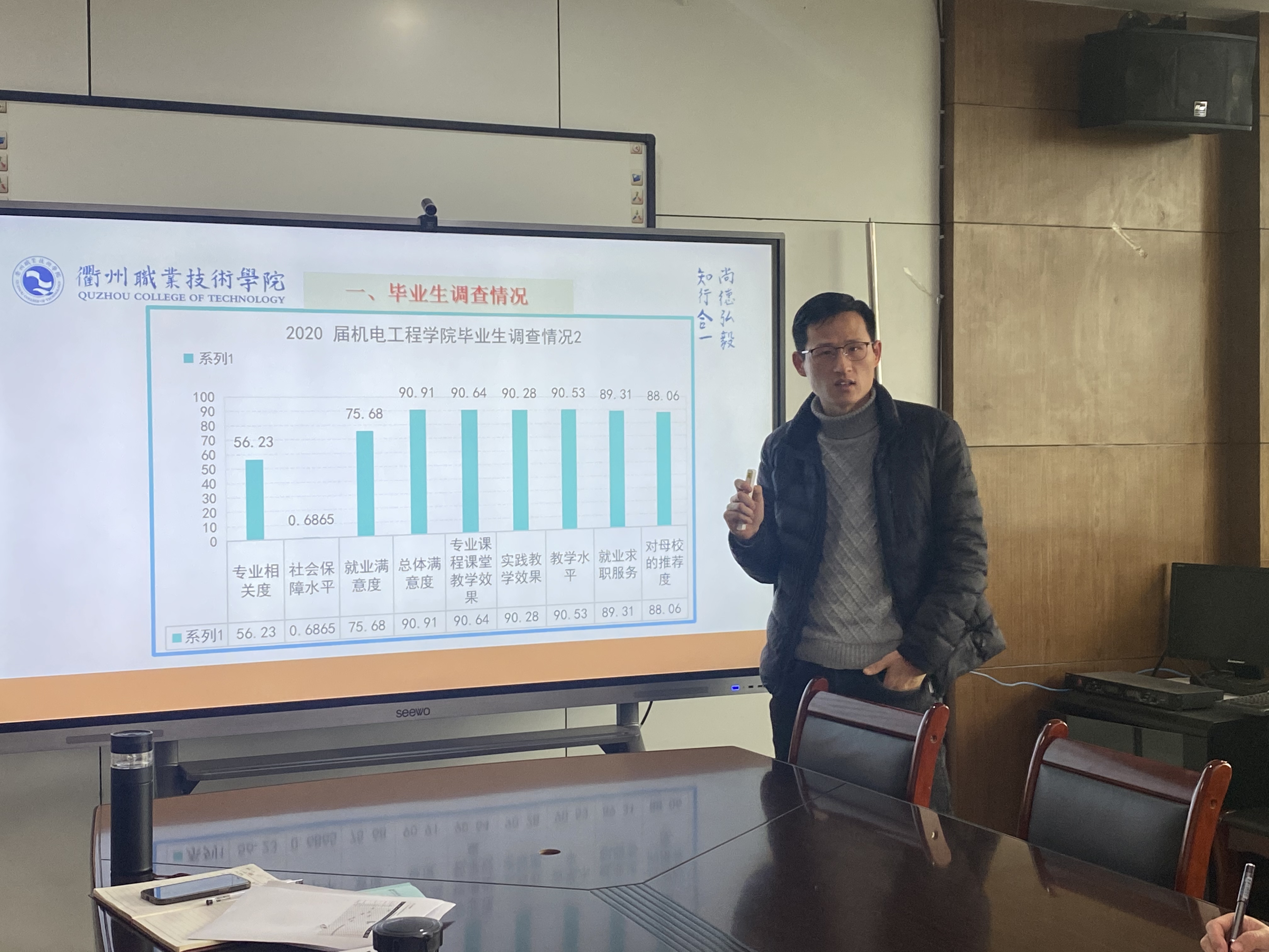 为进一步提升学生综合满意度,提高伟德国际1946bv官网育人水平,2月20日,伟德国际1946bv官网在机电307召开毕业生跟踪调查数据分析会,会议由伟德国际1946bv官网党总支书记朱峻主持,全体班子成员及专业主任、综合办和学工办主任参加了本次会议。