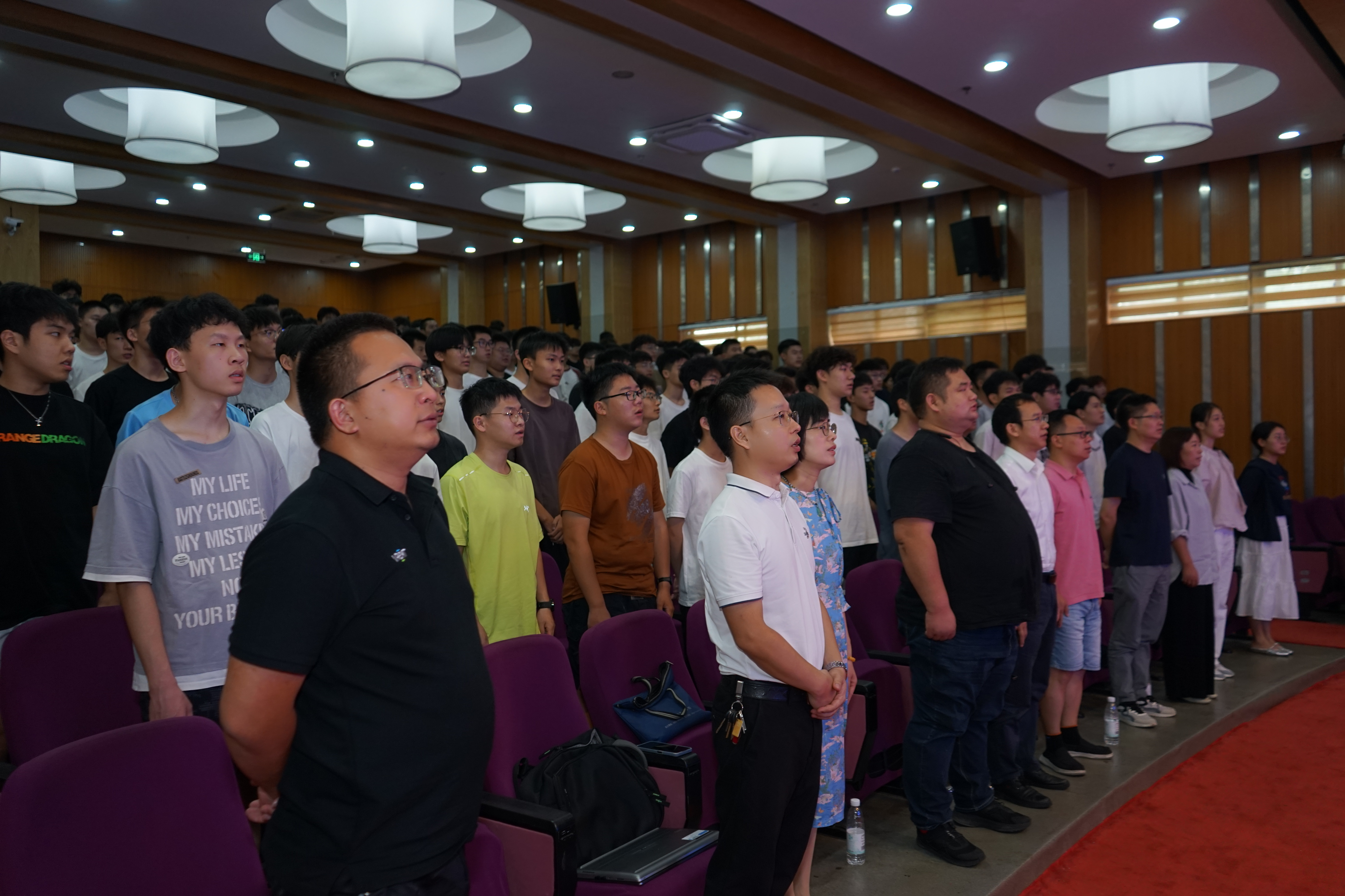 开场,全体起立奏唱国歌,用声声坚定,句句铿锵诉说昂扬,激励每一位机电学子。