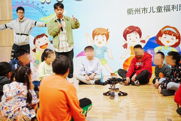 工业机器人的学生们运用着自己所学的知识为孩子们展示自主研发的机器人,并进行各种机器人表演,激发孩子们对科技的兴趣与好奇心。