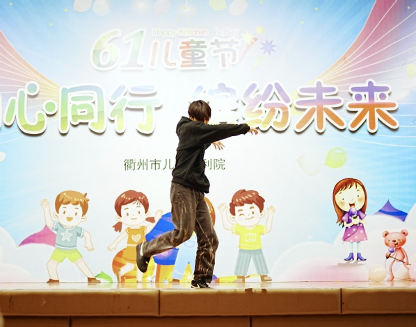 第一个活动由衢职院的舞狮社的《叮当舞》为整场活动拉开了序幕,他们四人两狮子在舞台上舞蹈,前面的舞步宏伟霸气,尽显中华传统文化的宏伟壮观。后面的舞蹈柔和唯美,反映了国人的善良与诚实。结束后舞者们下台与小朋友们互动,与他们共享传统文化的丰富多彩。