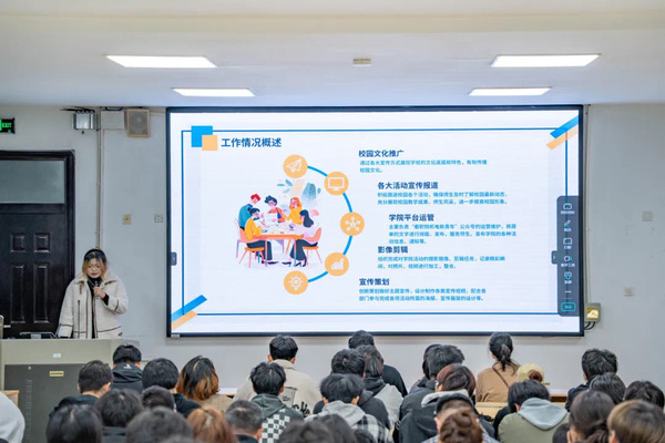 会议上,各部门负责人进行述职演说,围绕自我情况、部门职责、对部门的理解、后期部门工作开展规划等方面展开叙述,同时,学生会各负责人积极思考,探讨了工作中存在的不足与缺陷,结合实际情况,提出了切实可行的解决方案。