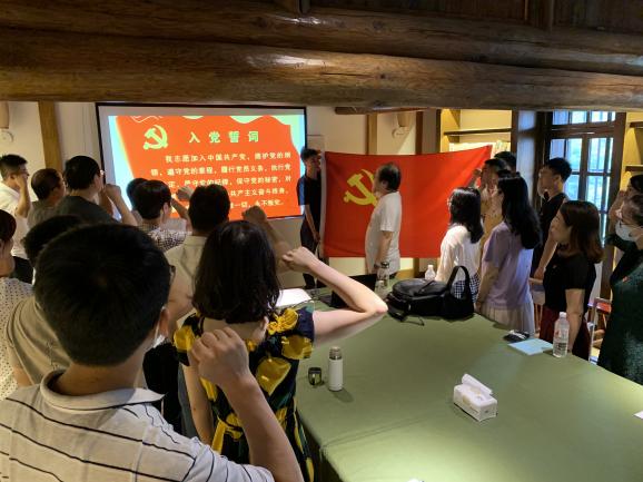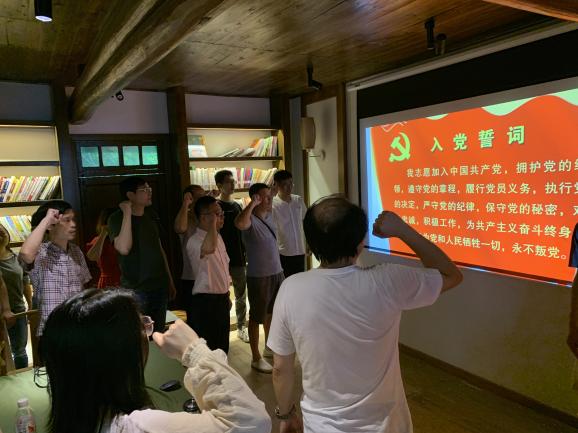 参观结束后,在大陈村萃文中学旧址,在伟德国际1946bv官网党总支书记朱峻同志领誓下,42位党员教师们重温了入党誓词,铭记那一年许下的誓言:“我志愿加入中国共产党……随时准备为党和人民牺牲一切,永不叛党。”铿锵恢宏的誓词,强烈震撼着在场的每一位党员,一字一句,神圣而豪迈,铮铮誓言,体现了党员同志们对中国共产党的无限忠诚,坚定了入党使命,奋斗初心。