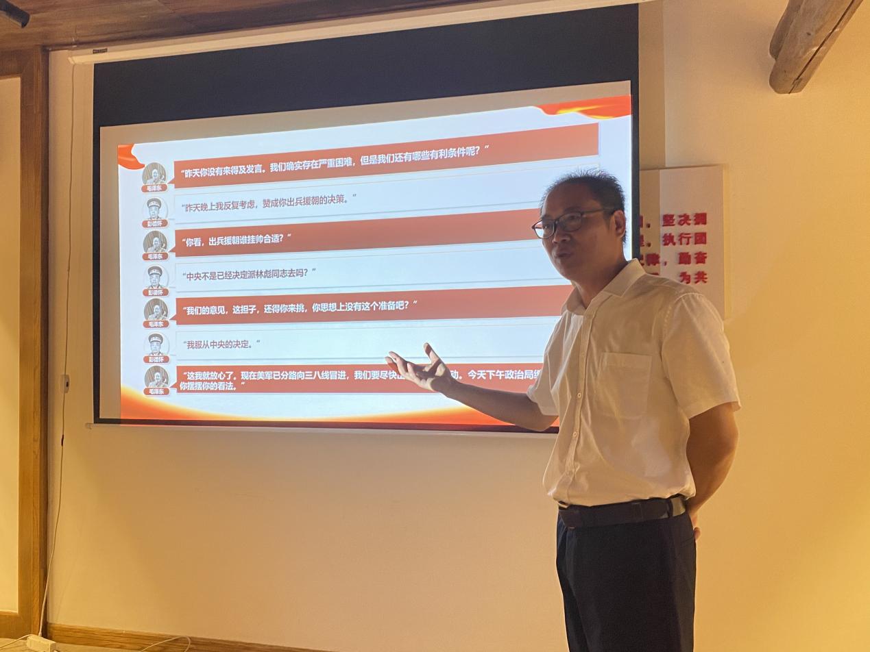宣誓结束后,衢州职业技术伟德国际1946bv官网党委委员、宣传部部长孔庆红同志为在座党员讲了一堂生动的党课,带大家领略了“从跨过鸭绿江,看名族复兴”的党史故事,了解中华民族伟大复兴历史进程的大跨越 ,引导大家学史明理、学史增信、学史崇德、学史力行,进一步激发党员的内在动力。他说,今年正是中国共产党建党100周年,因此组织到纪念馆参观,就是要表达对长眠于仙霞岭下无数革命先烈的深切怀念,学习革命先辈“革命理想高于天”的坚定信念、爱国爱民的高尚情怀。新的历史时期,要传承党和红军的优良传统,坚定理想信念,对于激发全体党员教师以饱满的热情投入到教育教学工作有着极为重要的意义。