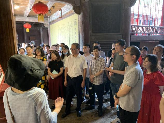 走进大陈村,大家便被这个美丽的古村落吸引了。灰瓦白墙,花窗雕板,屋脊如龙,墙头似马,青石砌就的巷道,曲曲弯弯,颇多古意。党员们先后参观了汪氏宗祠、大陈纪念馆和萃文中学,虽然当天时不时下起了阵雨,但是丝毫没有影响大家感受这古老历史村落中的红色文化的热烈氛围。