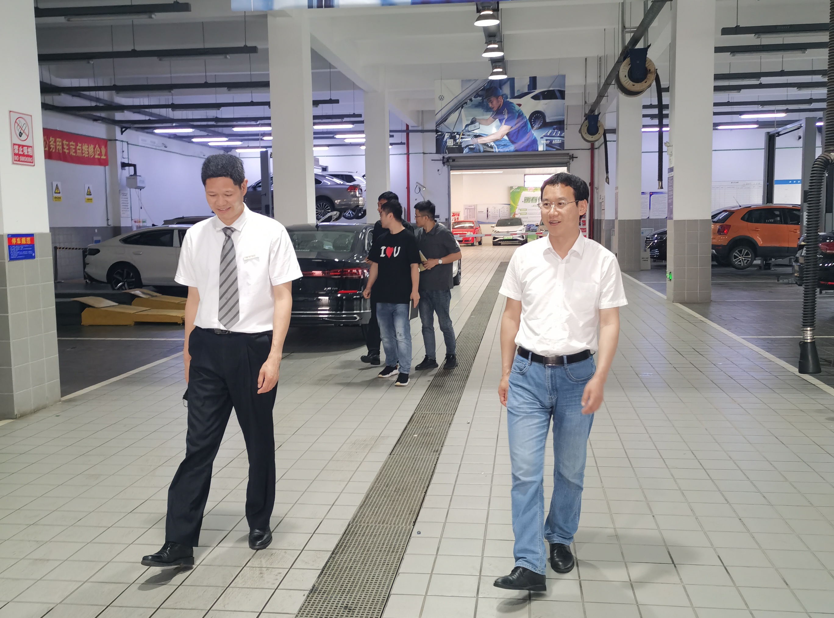 培训结束后,浙江中通汽车销售服务有限公司刘经理带领党员同志参观介绍了公司售前和售后各个部门运营情况,刘经理与魏院长围绕企业用工需求、技能人才培养需求等情况进行深入交流。