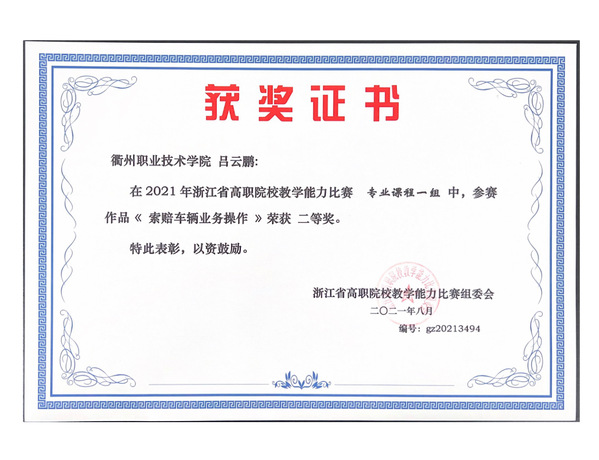 吕云鹏获2021年浙江省教学能力比赛二等奖