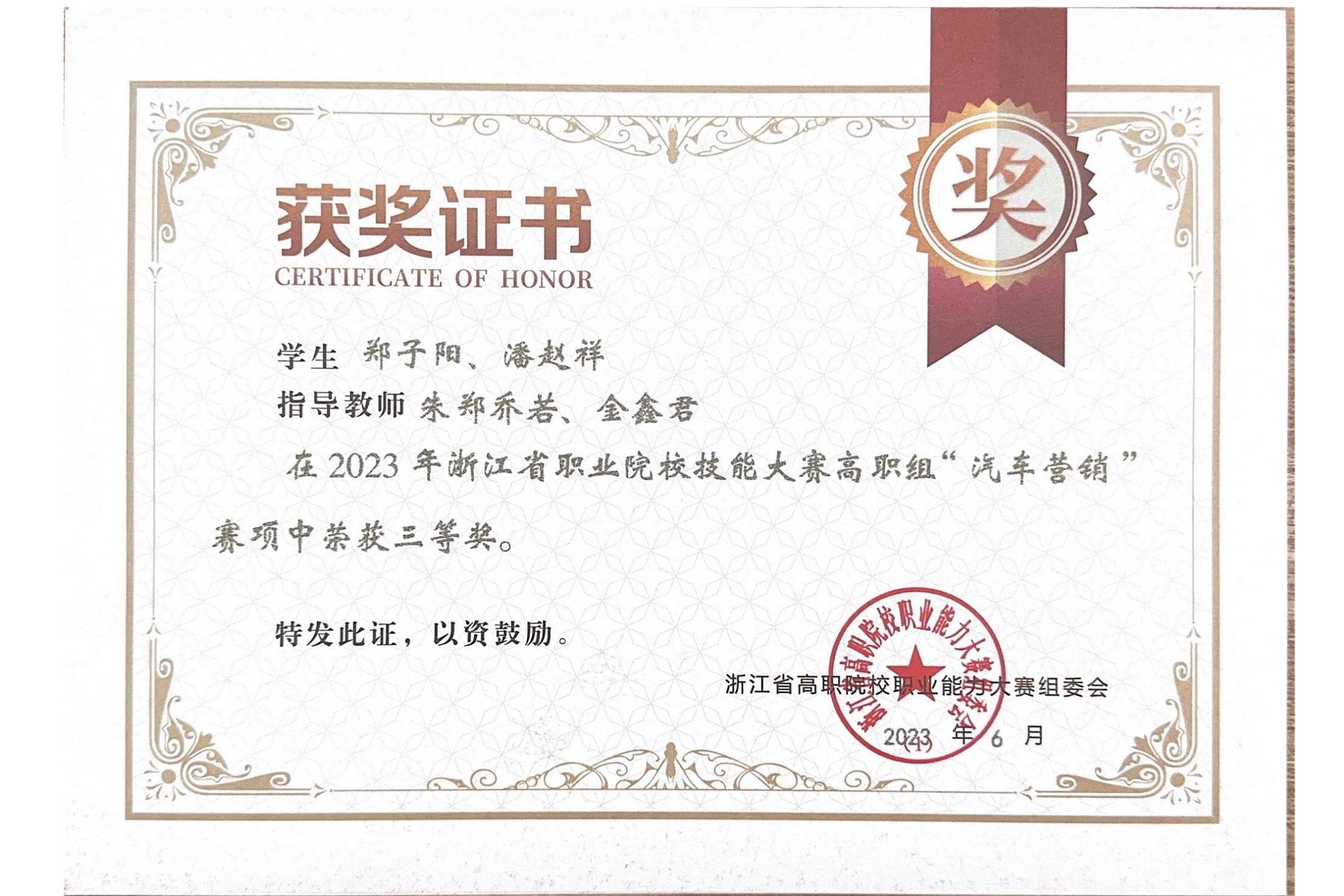 朱郑乔若、金鑫君指导学生获2023年浙江省职业技能竞赛三等奖