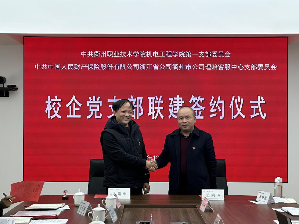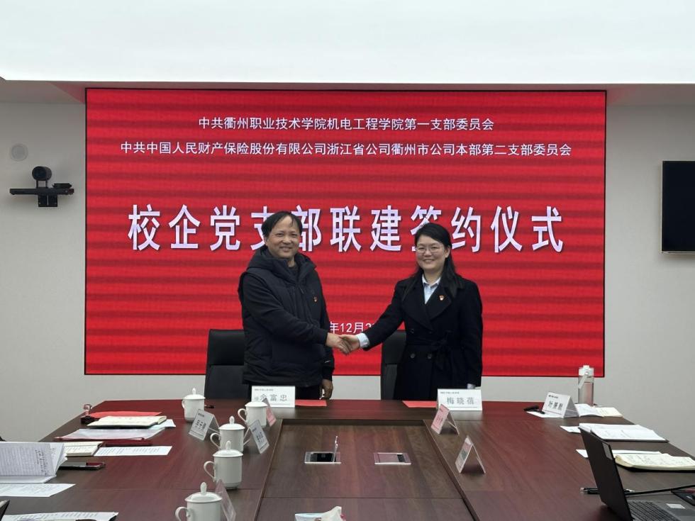 12月23日上午,衢州职业技术伟德国际1946bv官网伟德国际1946bv官网第一党支部与人保财险衢州市分公司本部第二党支部、理赔客服中心党支部,在人保财险衢州分公司会议室联合举办“党建联建”签约活动,并同步开展校企深度合作座谈。衢职院伟德国际1946bv官网院长魏小华、人保财险衢州市分公司人力资源部经理兼党委组织部部长梅晓蓓等双方党员代表参会。